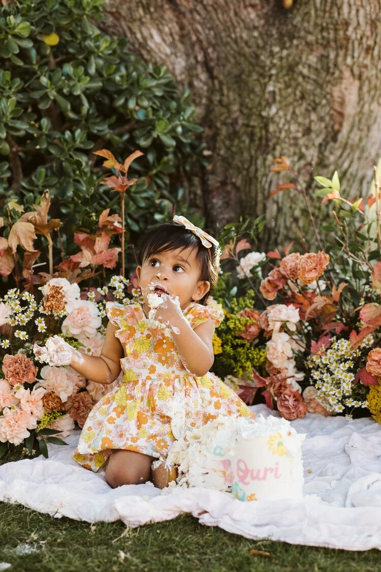 The Smash Cake is usually the first time little ones taste the delightful sweetness of sugar, and for most of them it's love at first bite. The sugar rush that follows is undeniably cute! Capturing these little face's the first time sugar touches their taste buds is so precious. But what will they do after that first taste? Hard to say. Some go plunging into the cake! But not always! You can see Mina covering herself with it but Quratulain is simply dipping her biscuit in it.