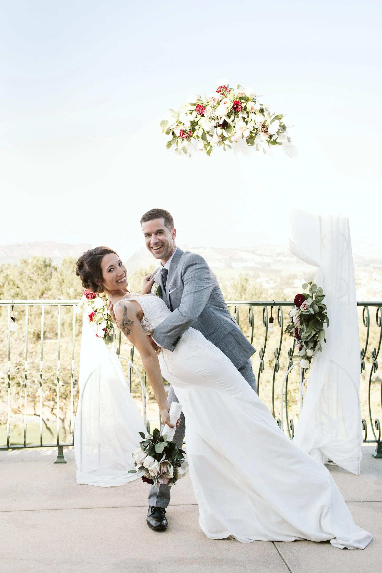 We followed the first look with half an hour of romantic photos in the Gardens of the Spanish Hills and Country Club. So much laugher and beautiful moments! The entire day was stress free as Milosh and Desiree had included extra time in their itinerary to take photos. They could focus on each other then and on their guests later. What a fun wedding!
