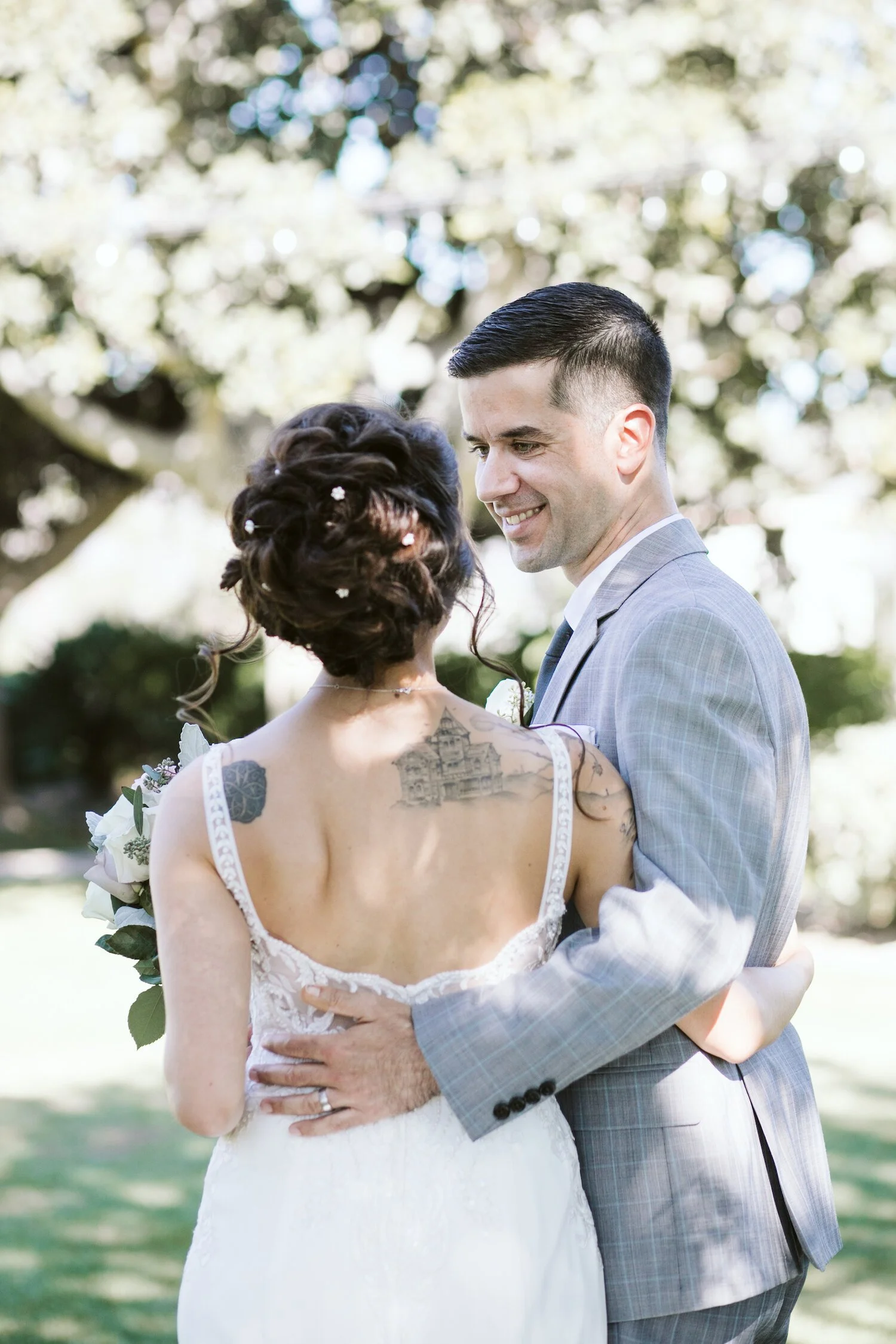 (When I asked Desiree about her back tattoo, she told me it was a haunted house and that she liked creepy stuff. I knew then she was my kind of bride! I love creepy stuff too. And I love your tattoos Desiree! <3 )